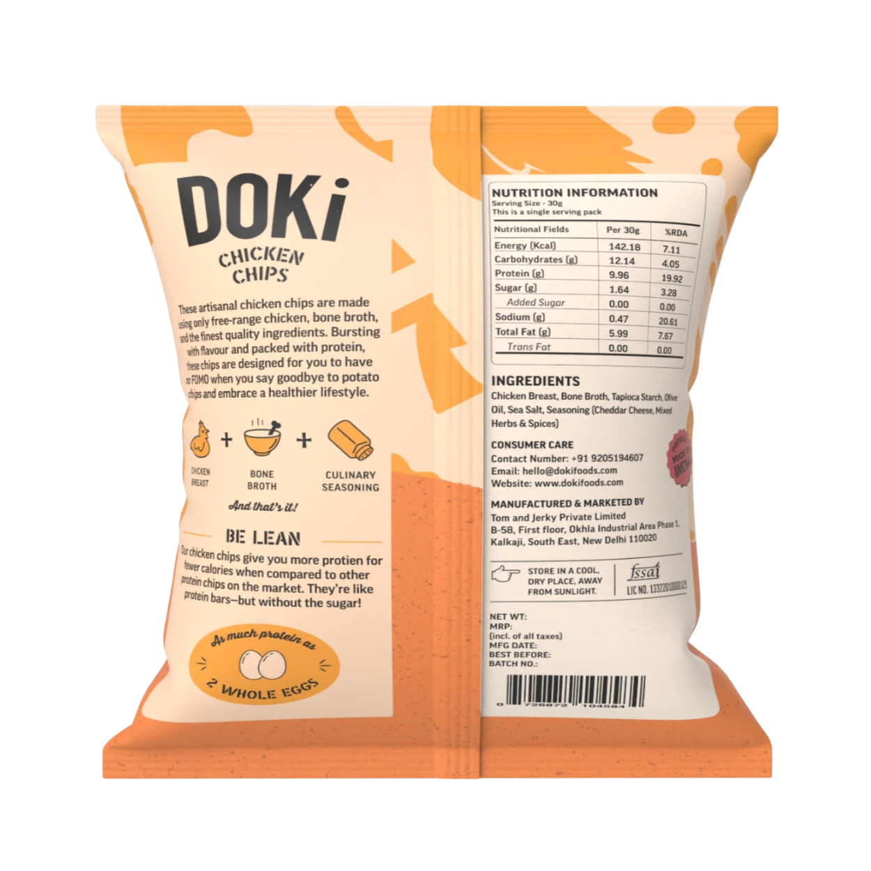 Chicken Chips are crafted from free-range chicken breast, bone broth, and a blend of bold spices. Meticulously developed for flavour and crunch, they’re a high-protein indulgence that redefines what chips can be.