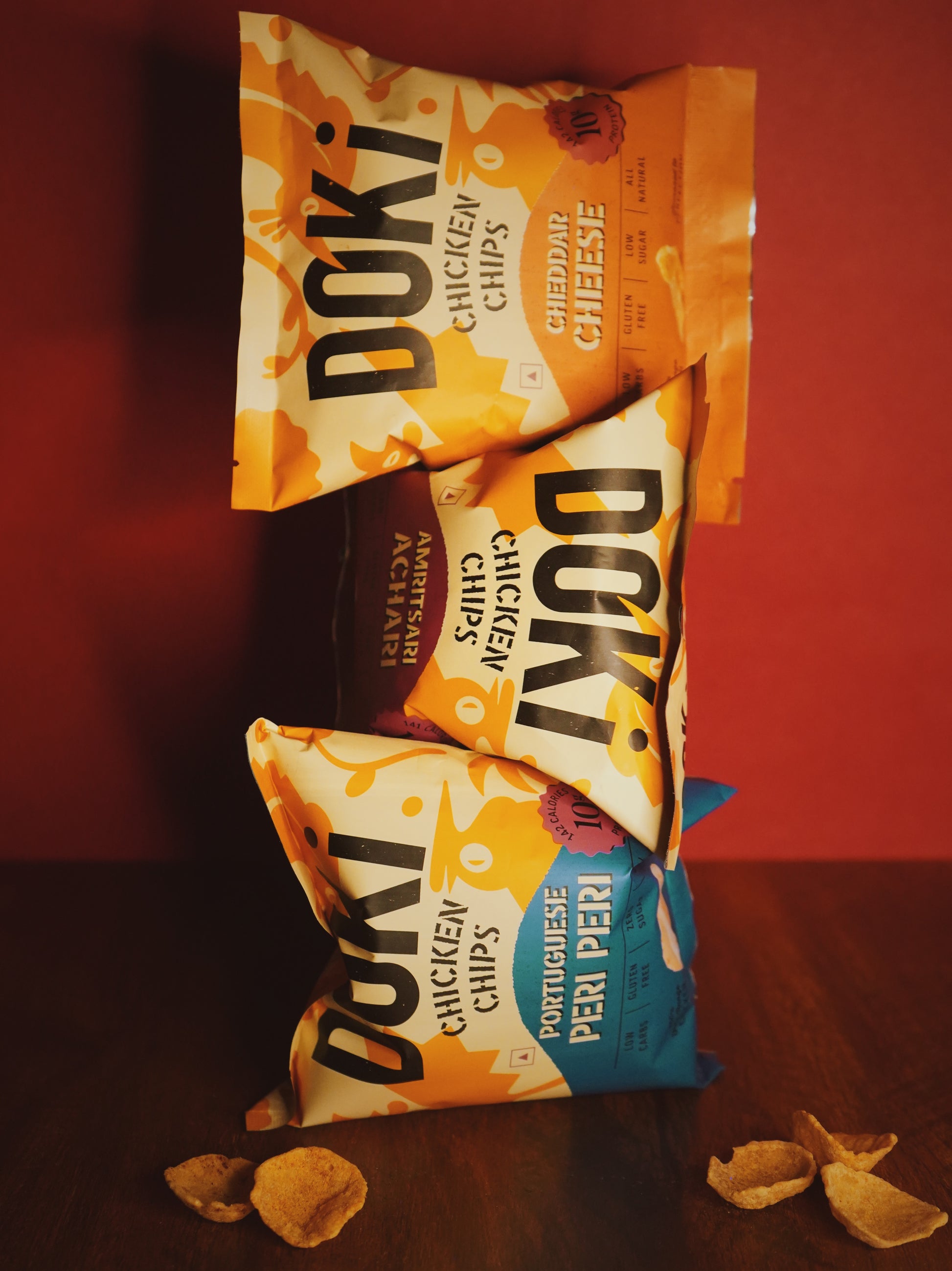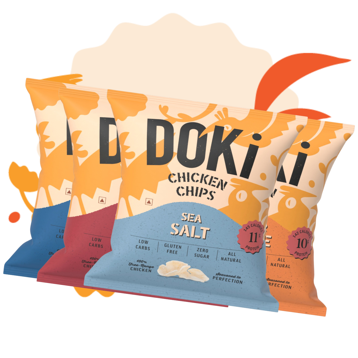 DOKi Chicken Chips are crafted from free-range chicken breast, bone broth, and a blend of bold spices. Meticulously developed for flavour and crunch, they’re a high-protein indulgence that redefines what chips can be.