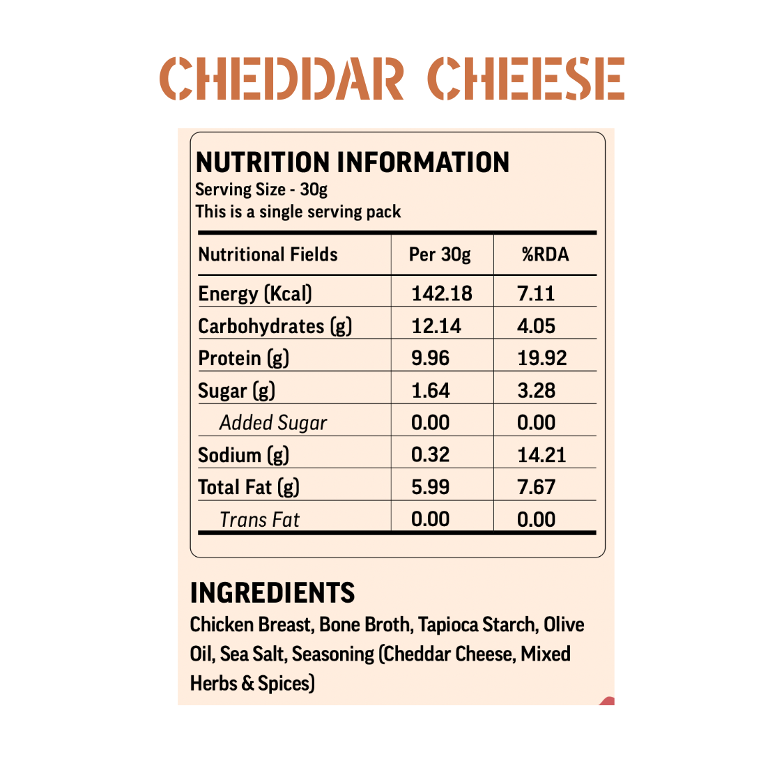 Bold aged cheddar meets crispy chicken — delivering the indulgence of gourmet cheese with the crunch of an artisan chip.