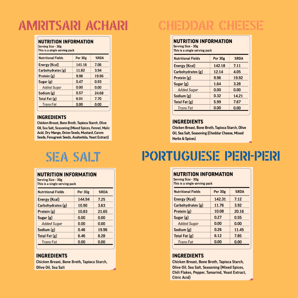 Lastly, they’re seasoned with our signature spice blends to give you the flavors you love and then packed into sealed bags (keeping out moisture and oxygen to maintain that perfect crunch).