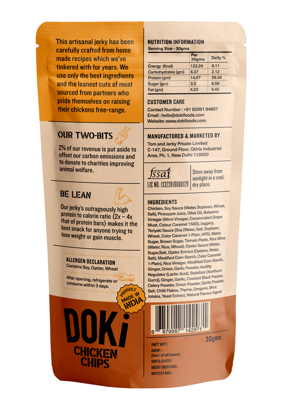 There’s no other snack that gives you as much protein for as few calories making Doki ideal for both people trying to lose weight and people trying to gain muscle. For context, our jerky gives you 3x more protein than the leanest protein bars.